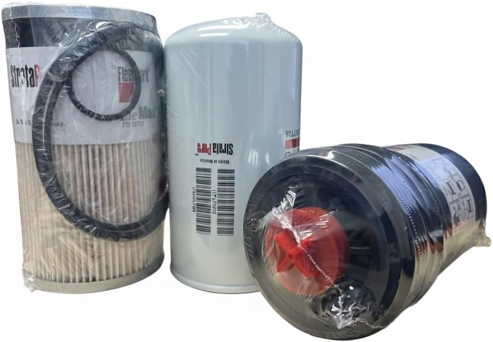 KIT Filter Fleetguard LF3970- FF63054NN- FS19727 EleMax’ LF3970 (Oil Filter): A spin-on, full-flow lube filter designed for high-performance heavy-duty diesel engines, providing superior filtration for engine health. FF63054NN (Fuel/Water Separator): A spin-on fuel filter using advanced NanoNet media to remove both particulates and water, protecting fuel injectors on Cummins B/L series engines and others. FS19727 (Fuel Filter): A standard-size EleMax fuel filter, often used with the FF63054NN, featuring a control valve for full filter use and biodiesel