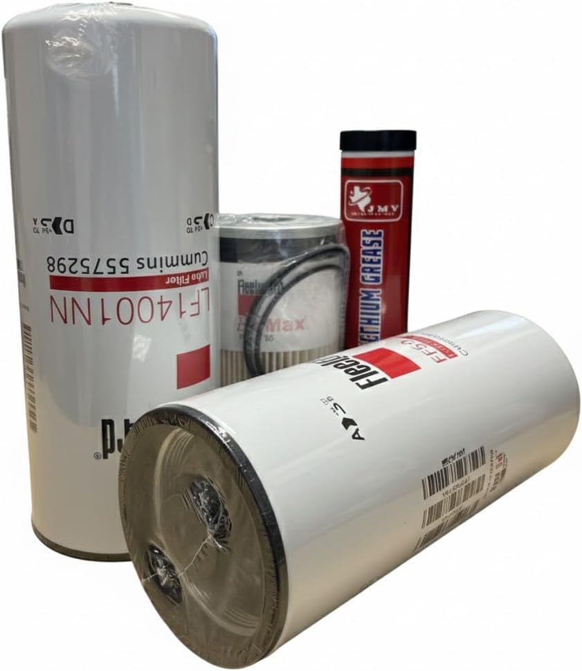 KIT FleetG LF14001NN FF5971NN FS19765, +1 GREASE RED Cummins X15, X12 engine preventive maintenance filter kit. The kit includes LF14001NN, FF5971NN, and FS19765. Replaces: FS19764 FS19765 P550851 PF7930 WF10005 21737499 85120233 FS19763 PF7928 P550849 L9765 L9763FXL 33763 FS19766 PF9814 33964 Replaces: LF14001NN, LF14000NN, 4367100, LF9080, P559000, LF9001, BD7154, 57746XD, LF-5724; Upgrade for LF9080 LF14000NN Replaces: SW9548886, 5575143, FF63041NN, FF5971-NN, FF63041, 5526400, V FF63041NN, BF46248, DBF5811, 5575143. Filters included: 1 FF5971NN fuel filter. 1 FS19765 fuel filter water separator. 1 LF14001NN spin-on lube filter