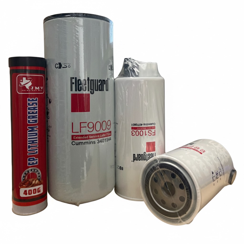 KIT Filtro Fleetguard, Filtro de lubricante LF9009, Filtro de combustible FF5488, Filtro FS1003 + 1 Grasa roja
